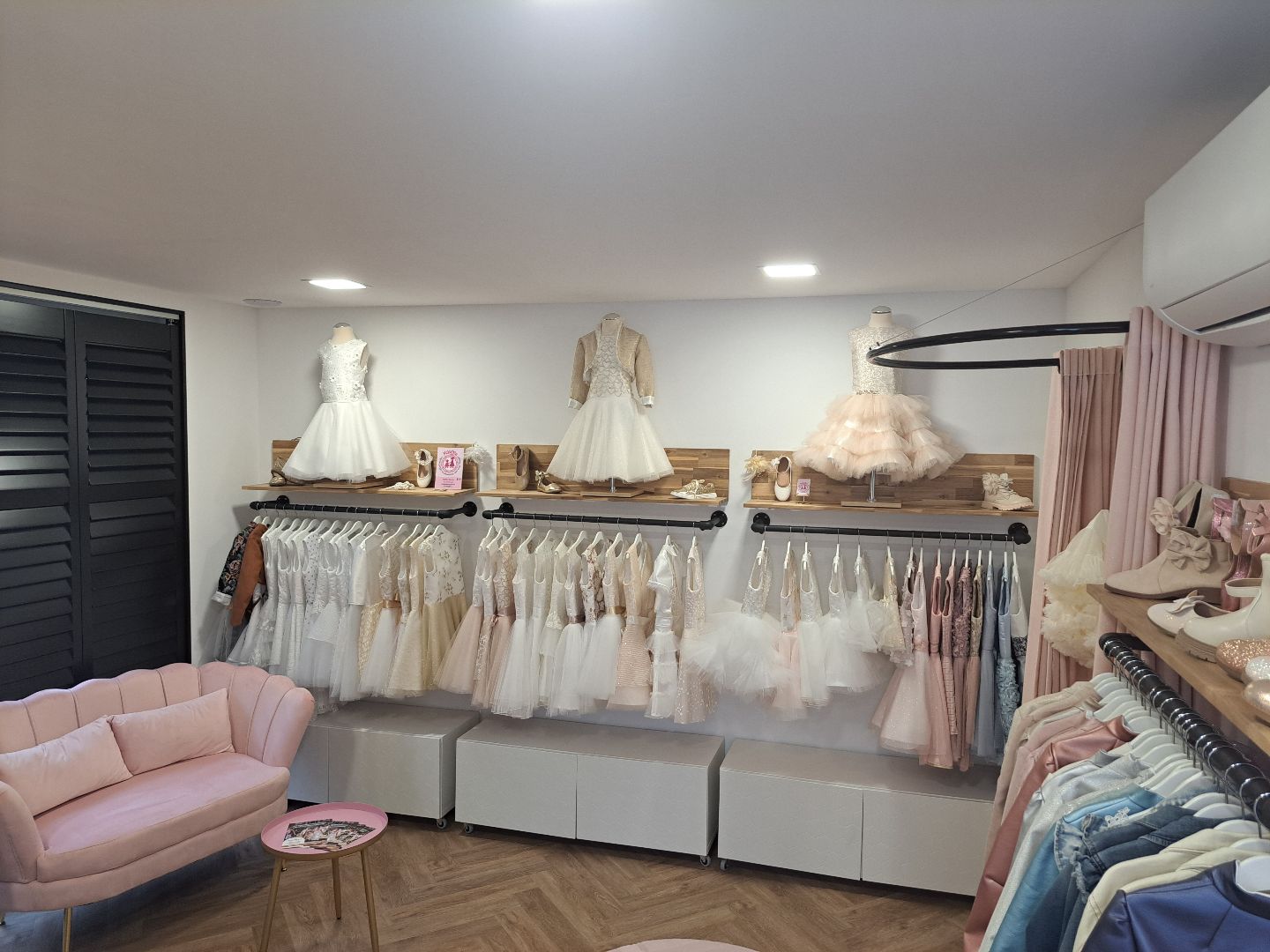 Een plek waarin alle mooie jurkjes goed zichtbaar zijn en waar gepast kan worden in een echte paskamer.